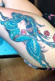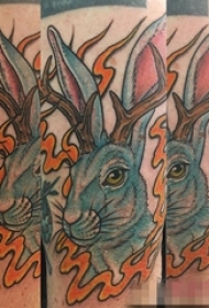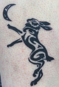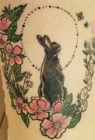 大腿上彩绘技巧几何元素点刺技巧兔子小动物纹身图片