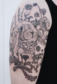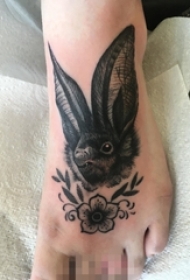 女生大腿上黑灰素描超写实3d兔子纹身图片