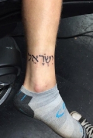 男生脚踝上黑色简单线条创意梵文纹身图片