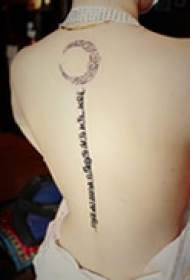 纹身后背女 女生脊柱上梵文和莲花纹身图片