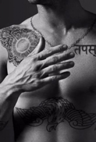纹身胸部男 男生胸部黑色的人物剪影纹身图片
