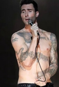 美国纹身明星 Adam Levine身上黑灰的创意纹身图片