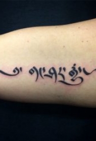 手臂纹身图片 男生手臂上黑色的梵文纹身图片