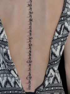 性感的脊椎部梵文纹身刺青很诱人