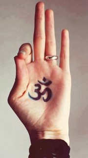 手掌上个性梵文纹身