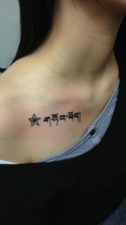 90后小女生锁骨简单梵文纹身