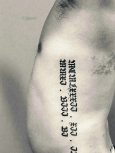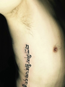 隐藏在侧腰部的个性梵文纹身图片