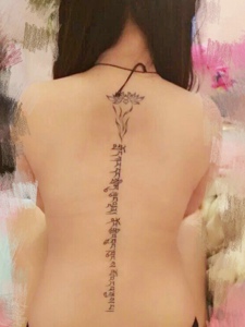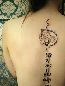 脊椎部的时尚梵文刺青女生的最爱