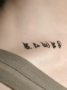 锁骨部位简约的梵文纹身图片