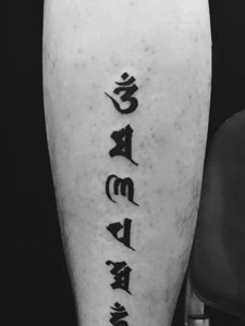 手臂外侧简约的梵文纹身图案