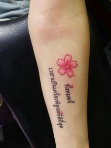小清新花朵与梵文的手臂纹身刺青
