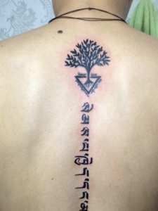 脊椎部个性迷人的梵文纹身刺青
