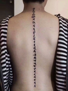 脊椎部梵文纹身刺青个性十足