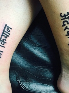 非常简陋低调的小腿部情侣梵文刺青