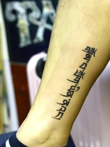 处在非常不起眼的小腿梵文刺青