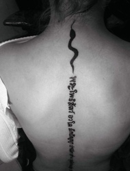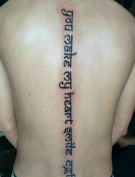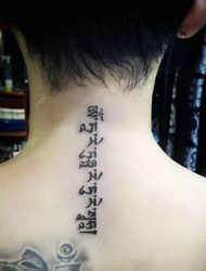 男生背部上一串梵文精美刺青
