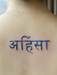 背部闪闪发亮的简单梵文纹身