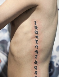 细腰男孩侧腰部的个性梵文瓷刺青