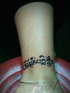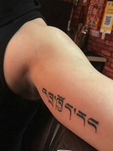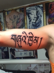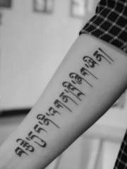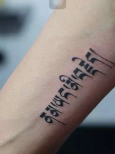 女孩手臂莲花坐梵文蝴蝶纹身图案