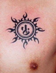 精致的胸口图腾太阳梵文纹身图片作品