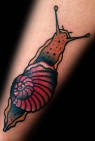 蜗牛纹身图案 男生手臂上彩色的蜗牛纹身图片