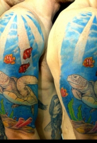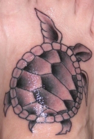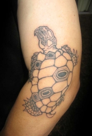 小腿有趣的卡通乌龟玩电吉他纹身图案
