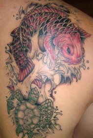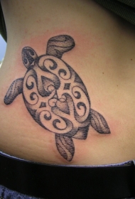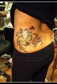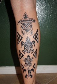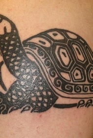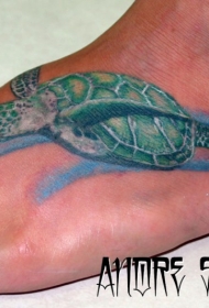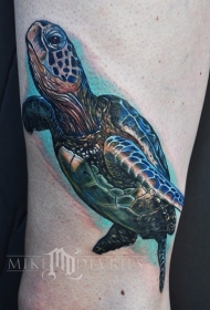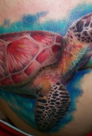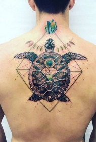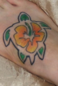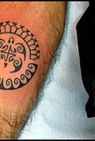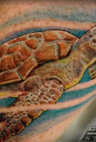 大臂五彩滩日落棕榈树和乌龟纹身图案