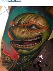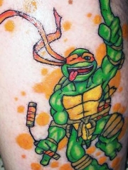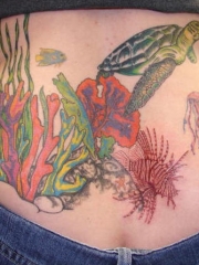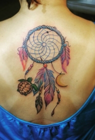 背部甜美的彩色捕梦网和乌龟纹身图案