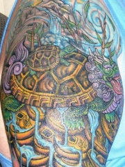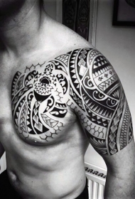 半甲黑白部落装饰与乌龟图腾纹身图案