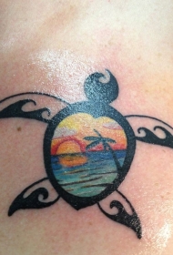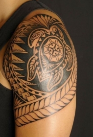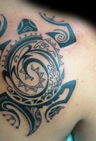 黑色波利尼西亚人乌龟图腾肩部纹身图案