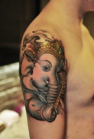 纹身象神图案 男生后背上彩色的象神纹身图片