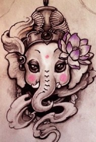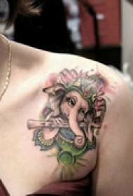 纹身象神图案 女生大腿上彩色的象神纹身图片