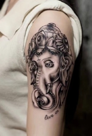 双大臂纹身 男生大臂上黑色的象神纹身图片