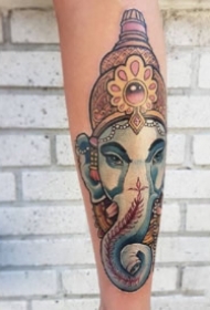 小腿象神纹身图案 女生小腿上彩绘的象神纹身图片