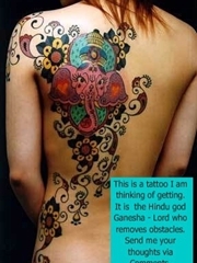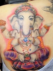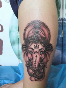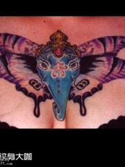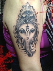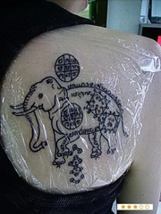 胸部彩绘传统象神牡丹花纹身tattoo图案