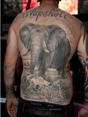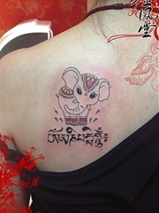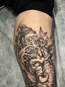 帅气的动物纹身神象和老虎的泰国特色纹身图案