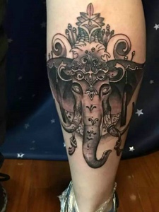 小腿外侧耐看的小象神纹身图案