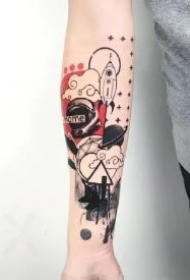 小臂上创意的欧美黑灰school纹身作品