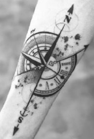 小臂指南针纹身 胳膊小臂上的9款黑灰指南针纹身作品图片