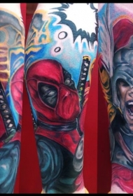 手臂邪恶的女人小丑彩色肖像纹身图案
