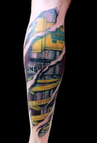 小臂彩绘幻想女人肖像和逼真花朵纹身图案