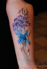 小臂new school彩色美丽的花朵纹身图案