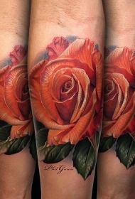 小臂漂亮的彩色写实玫瑰纹身图案