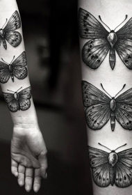 小臂美丽的雕刻风格蝴蝶纹身图案