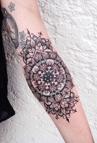 小臂美丽的黑白捕梦网花朵纹身图案