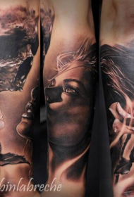 小臂写实风格彩色美女肖像纹身图案