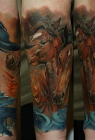 手背美丽的彩色马和美人鱼纹身图案