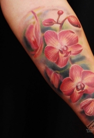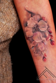 手臂写实风格彩色的花朵纹身图案