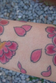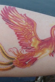 小臂彩色大鸟与花朵和蝴蝶纹身图案