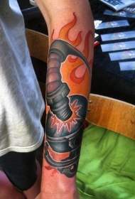 小臂彩色火焰汽车活塞纹身图案